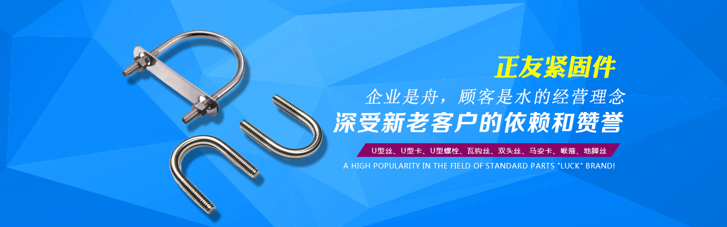 河北正友緊固件制造有限公司(原永年縣河北鋪天緣緊固件廠)坐落在永年縣河北鋪工業區,地理位置優(yōu)越,交通便利。自1994年建廠至今,在各界人士的關懷和新老客戶的擁護及全廠員工的努力下,企業日益發(fā)展壯大,產品不斷更新,以U型絲、U型卡、U型螺栓、瓦鉤絲、雙頭絲、馬安卡、喉箍、地腳絲等產品的過硬質量,創(chuàng)下在標準件領域知名度較高的“正友”品牌! 為答謝新老客戶長期以來對我廠的幫助與信任,我廠在提高質量的同時,更是加強了產品售后服務的力度!以“企業是舟,顧客是水”的經營理念,鑄就“正友”日后的輝煌之路!